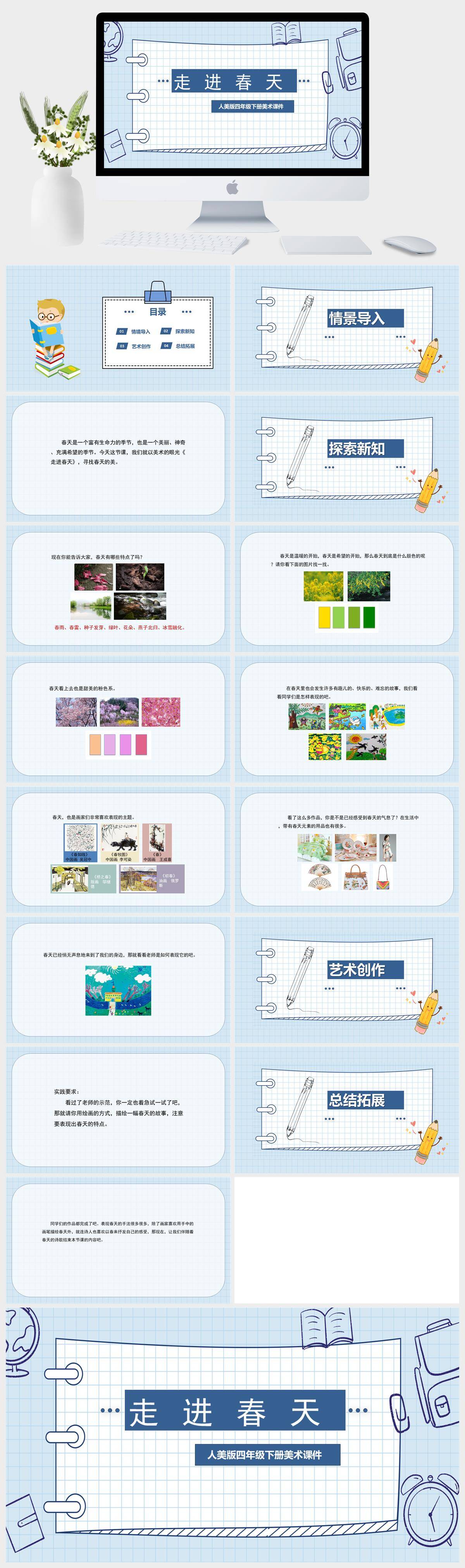 HKMS780-人美版四年级下册美术《走进春天》课 件PPT模板