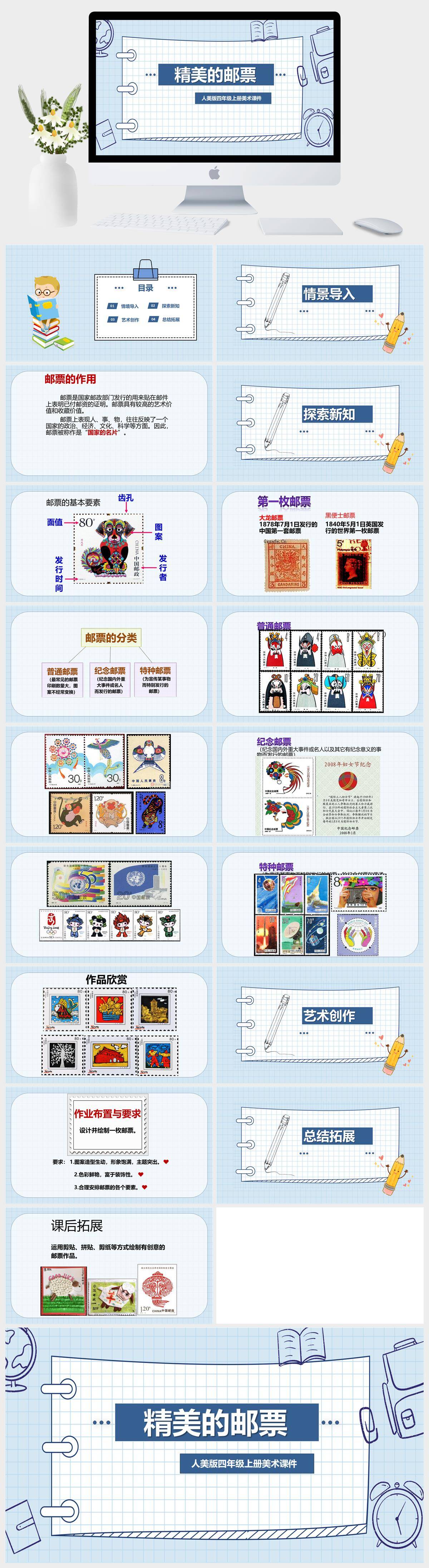 HKMS801-人美版四年级上册美术 《精美的邮票》课件PPT模板
