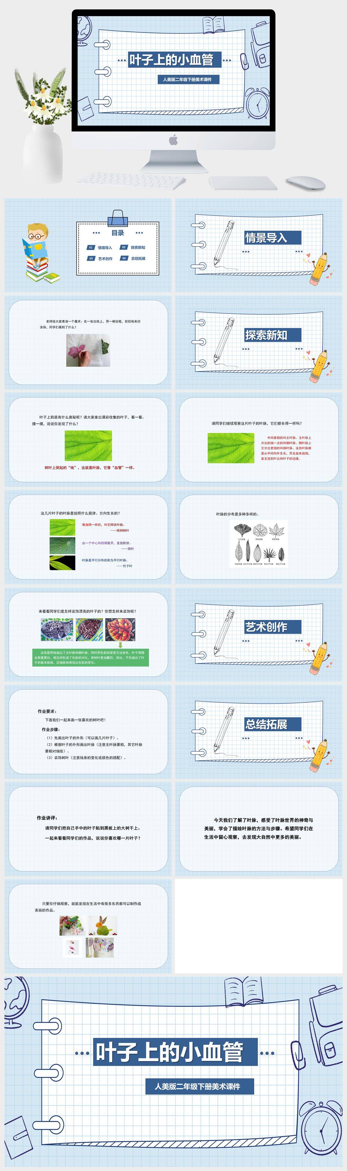 HKMS929-人美版二年级下册美术《叶子上的小“血管”》课件PPT模板