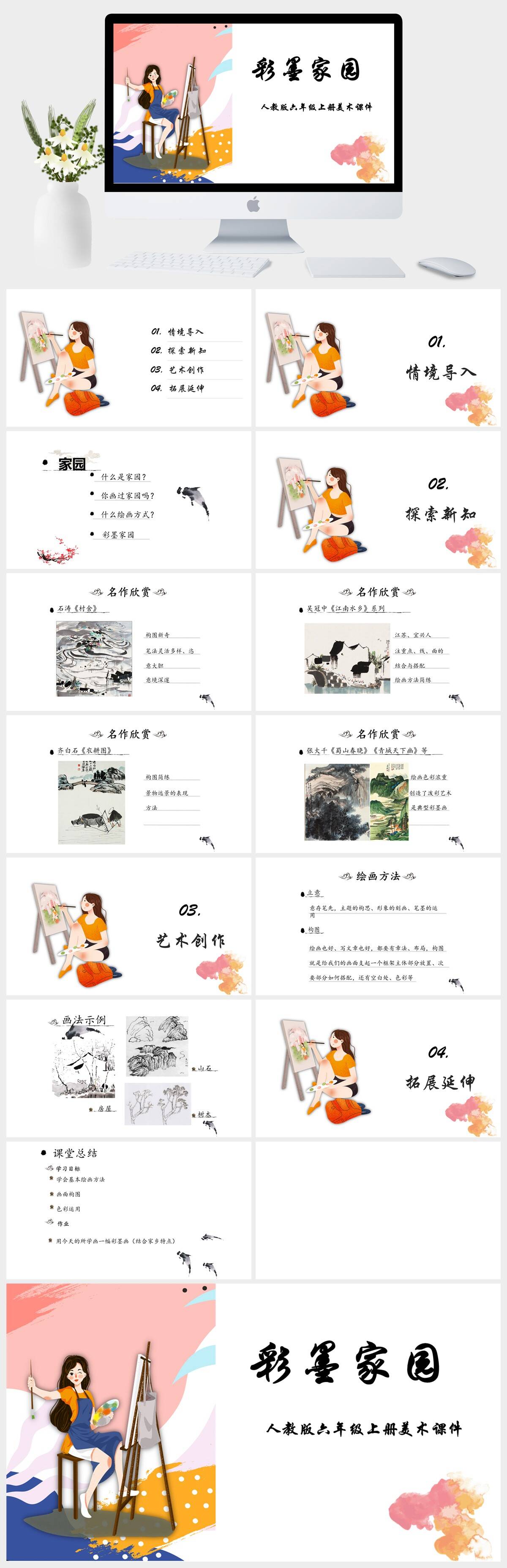 HKMS1467-人教版六年级上册美术《彩墨家园》2课件PPT模板