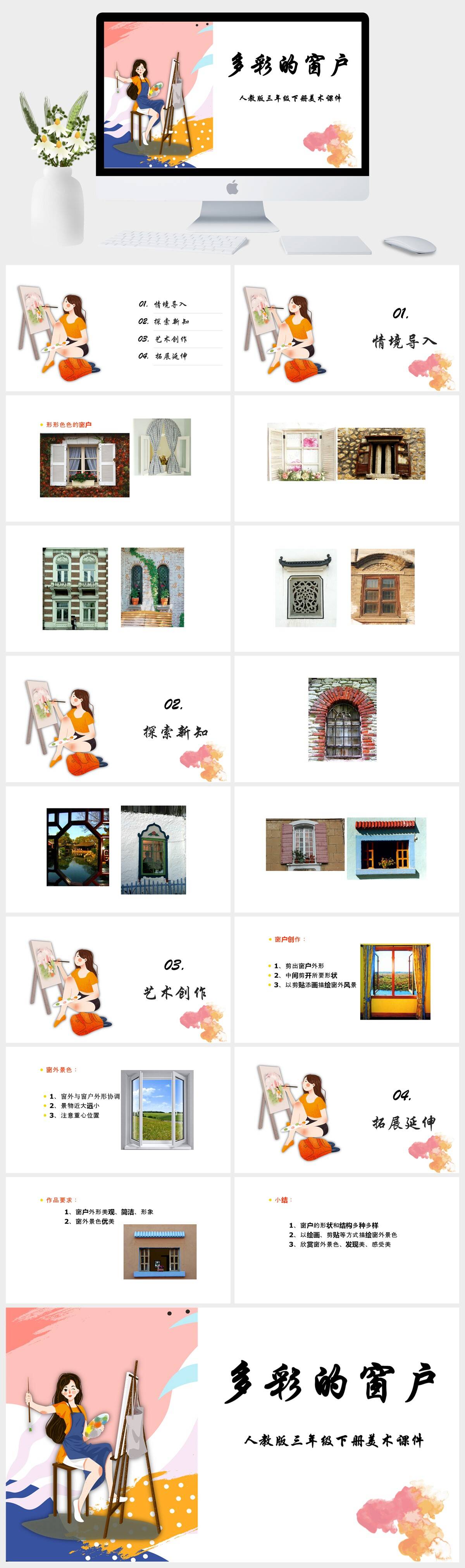 HKMS1628-人教版三年级下册美术《多彩的窗户》课件PPT模板