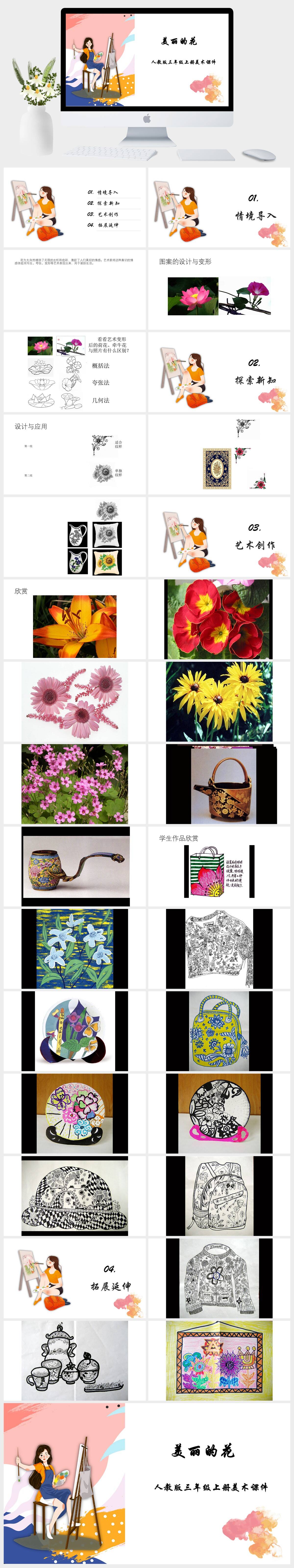 HKMS1681-人教版三年级上册美术《美丽的花》2课件PPT模板