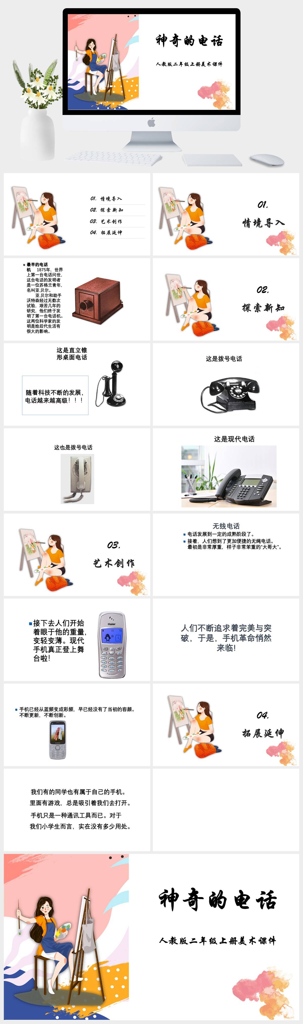 HKMS1848-人教版二年级上册美术《神奇的电话》课件PPT模板