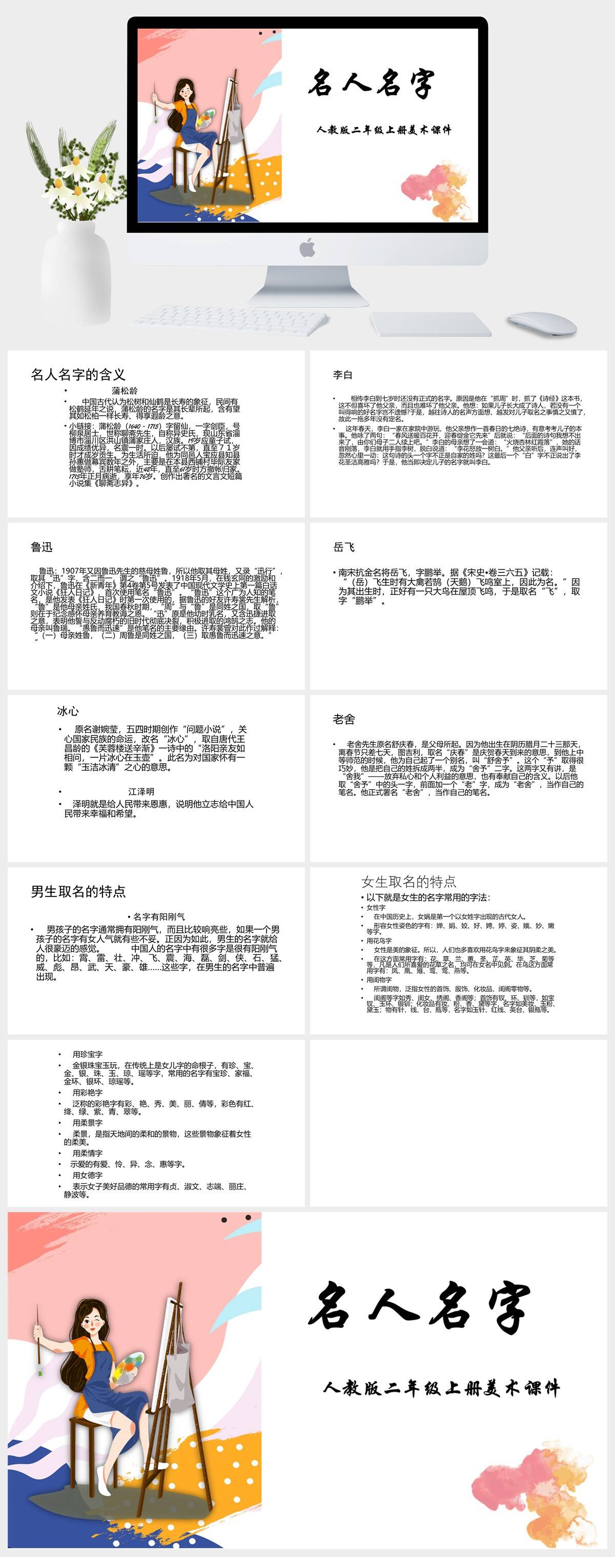 HKMS1890-人教版二年级上册美术《名人名字》课件PPT模板