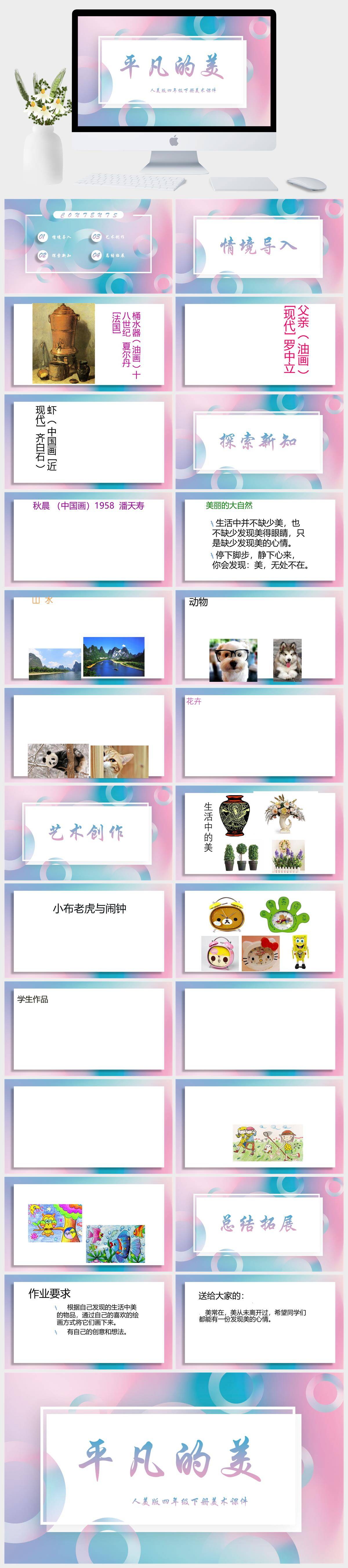 HKMS2044-人教版四年级下册美术《平凡的美》 课件PPT模板