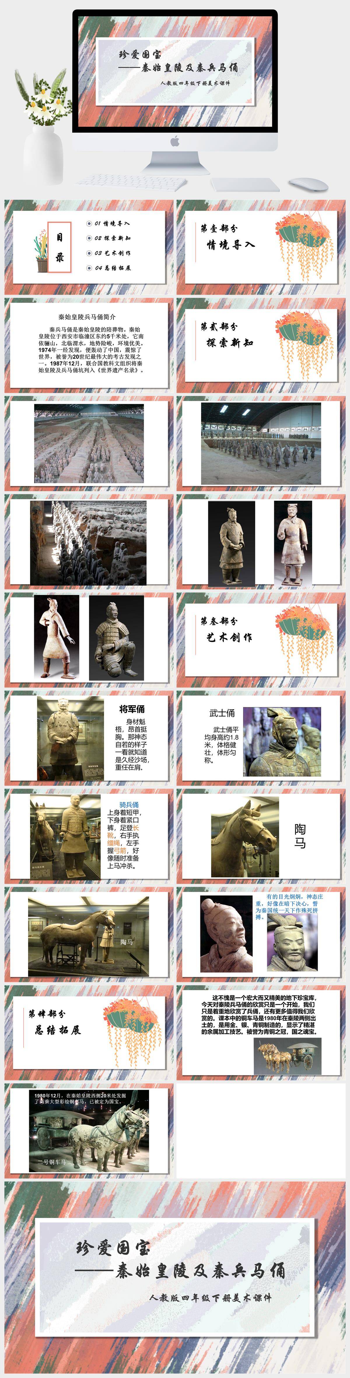 HKMS2062-人教版四年级下册美术《珍爱国宝——秦始皇陵及秦兵马俑》 课件PPT模板