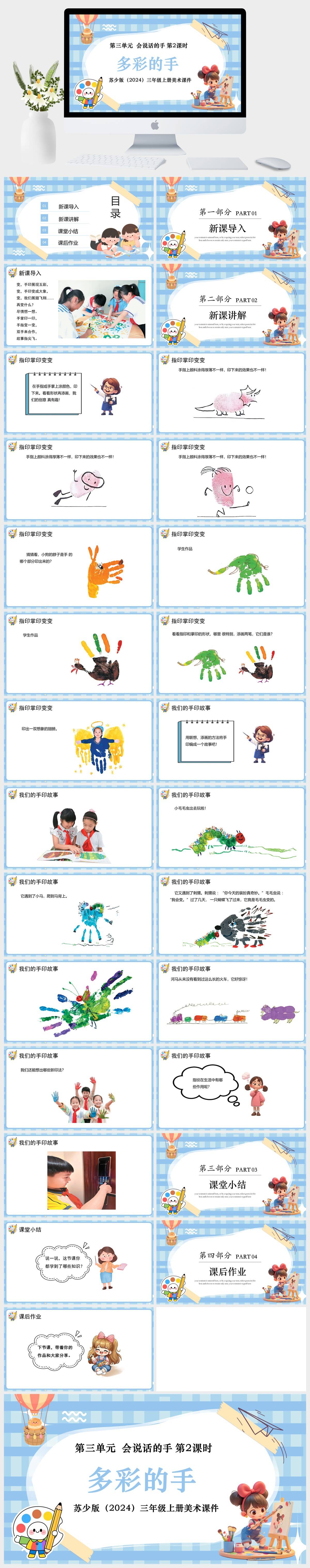 HKMS2151-苏少版(2024)三年级上册美术第三单元 会说话的手 第3课时会变的手课件PPT模板