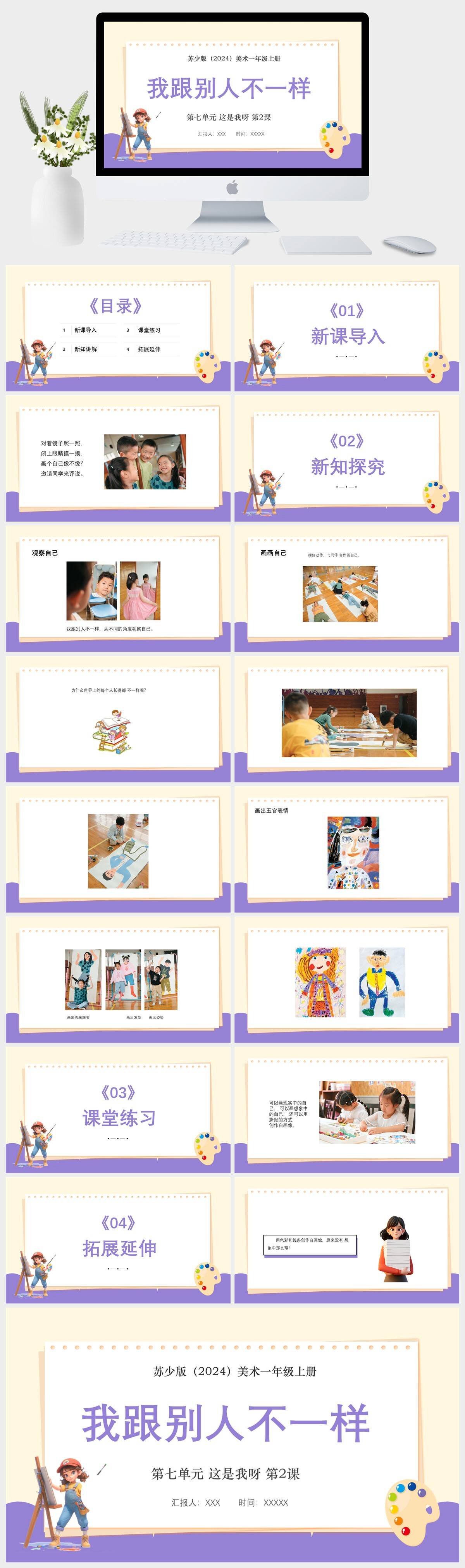 HKMS2200-苏少版(2024)美术一年级上册第七单元 这是我呀 第2课 我跟别人不一样PPT模板