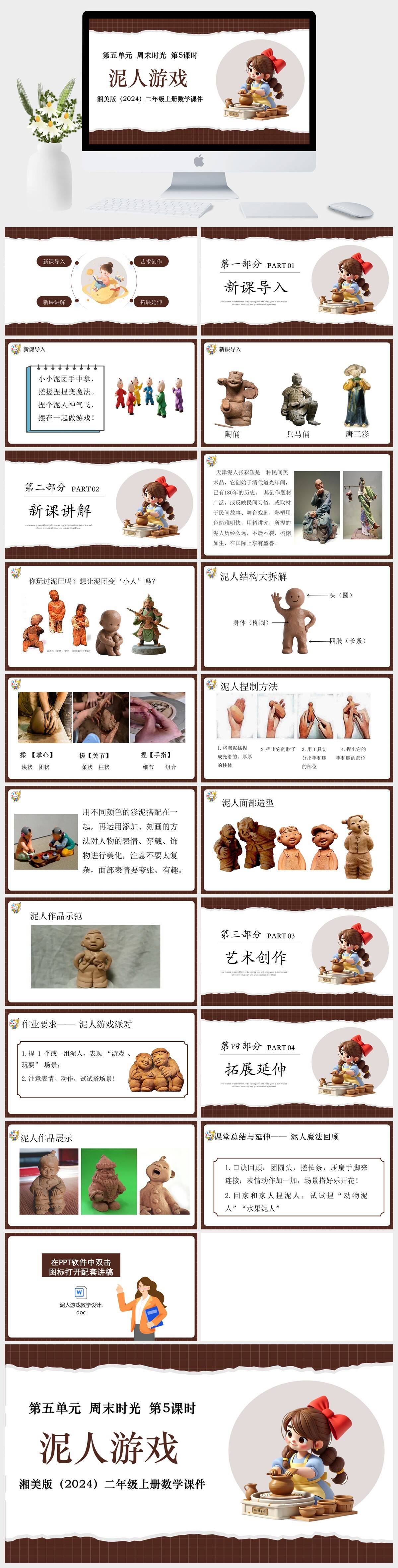 HKMS2388-湘美版(2024)二年级上册美术第五单元 周末时光 第5课时泥人游戏课件PPT模板