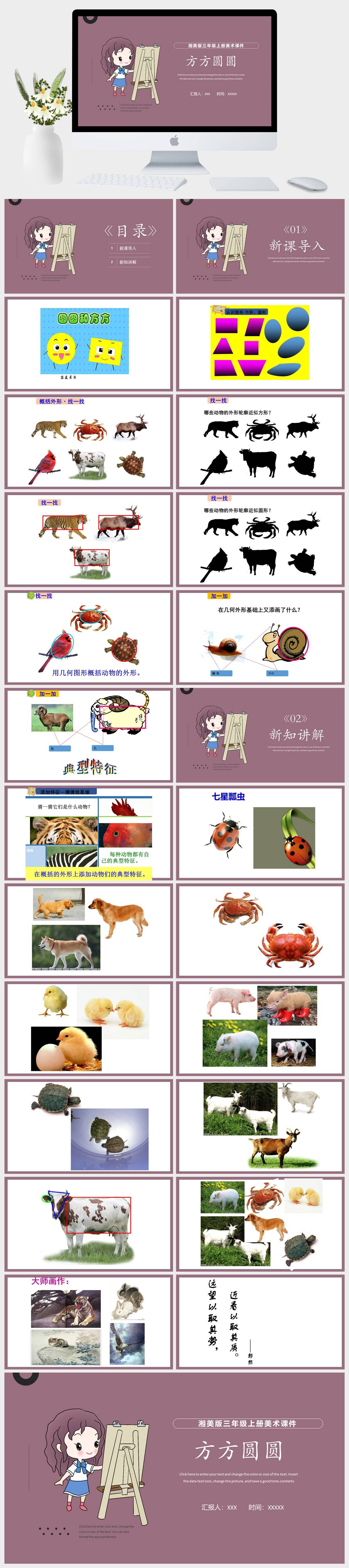 HKMS2615-湘美版三年级上册美术课件方方圆圆PT模板