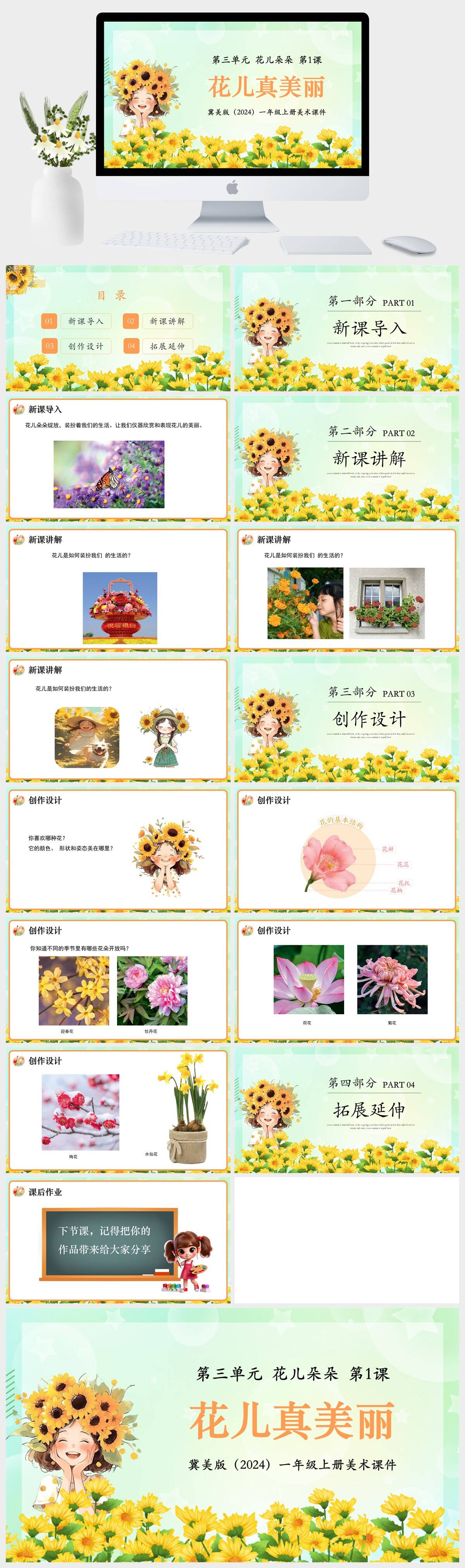 HKMS2667-冀美版(2024)一年级上册美术第三单元 花儿朵朵 第1课花儿真美丽课件PPT模板