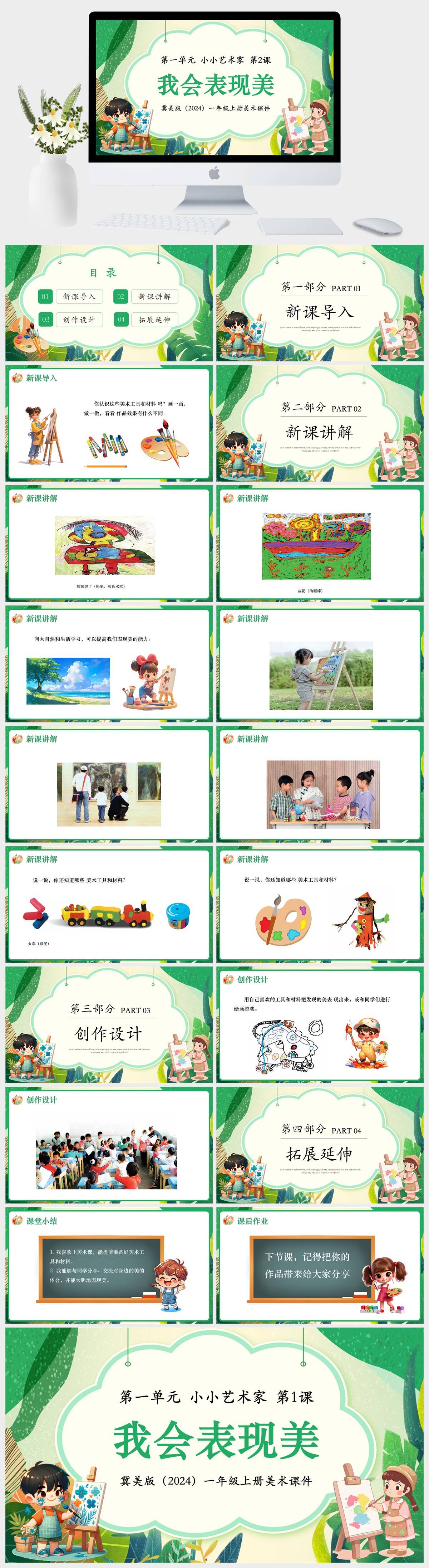 HKMS2672-冀美版(2024)一年级上册美术第一单元 小小艺术家 第2课我会表现美课件PPT模板