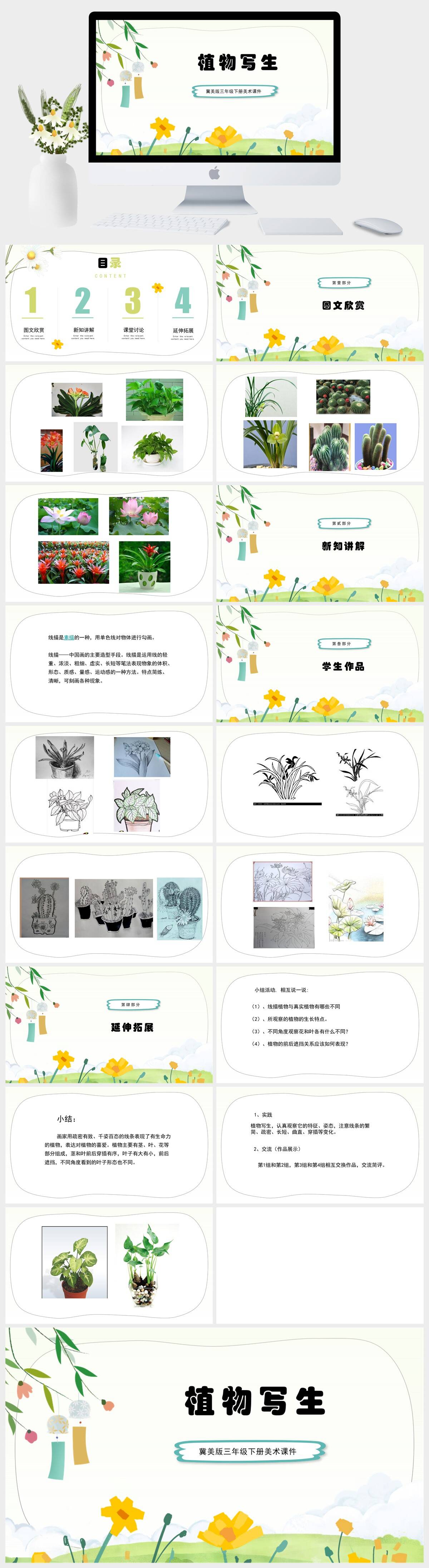HKMS2745-冀美版三年级下册美术课件植物写生PPT模板
