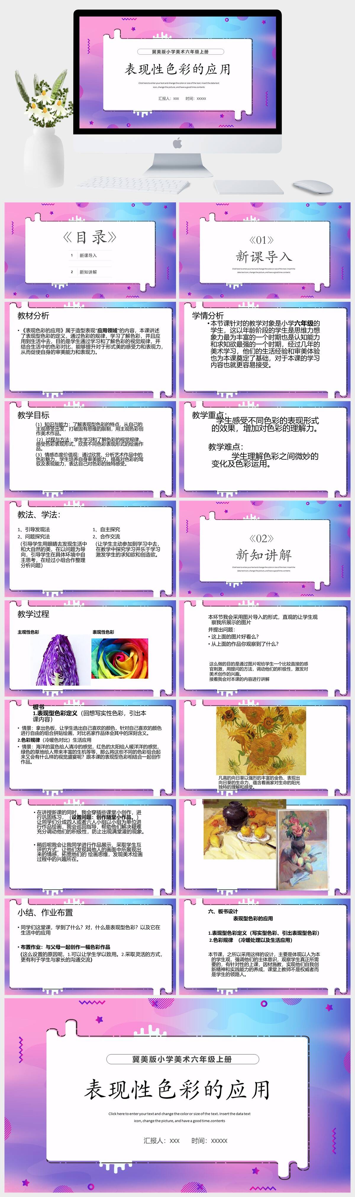 HKMS2830-冀美版小学美术六年级上册表现性色彩的应用PPT模板