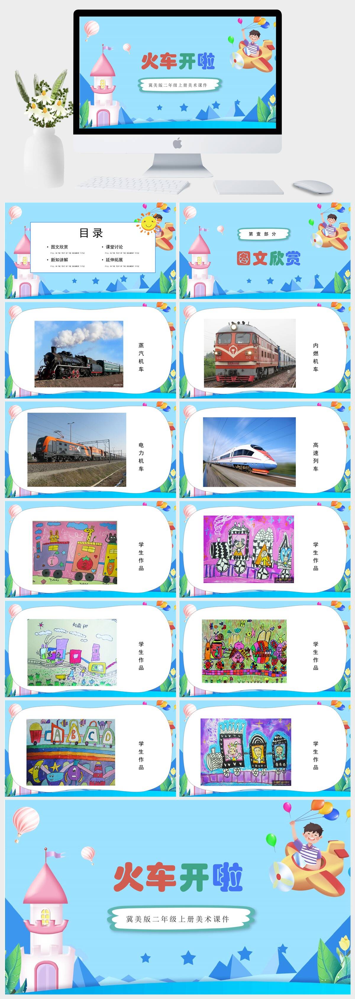 HKMS2844-冀美版二年级上册美术课件火车开啦PPT模板
