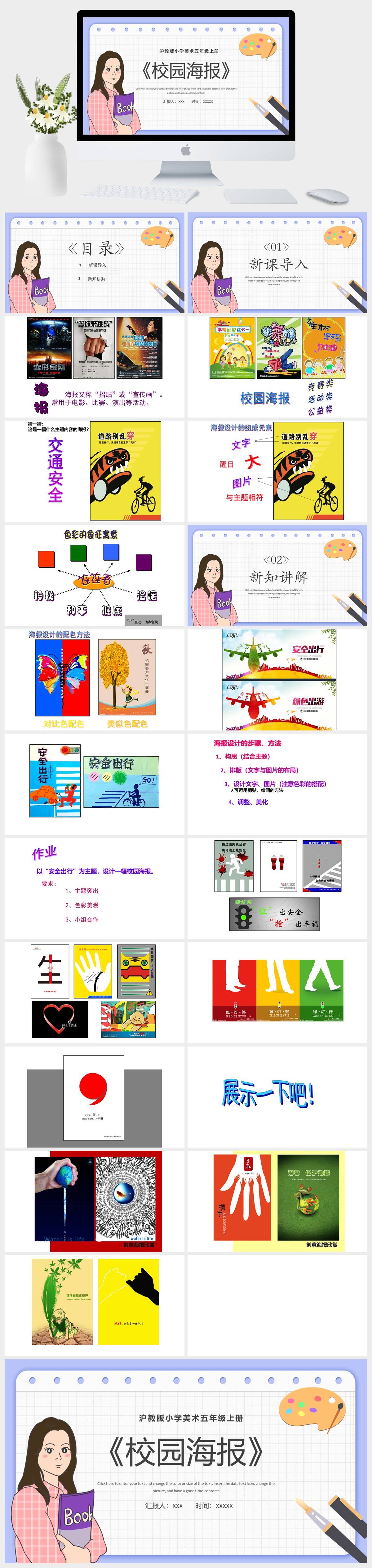 HKMS2903-沪教版小学美术五年级上册校园海报PPT模板