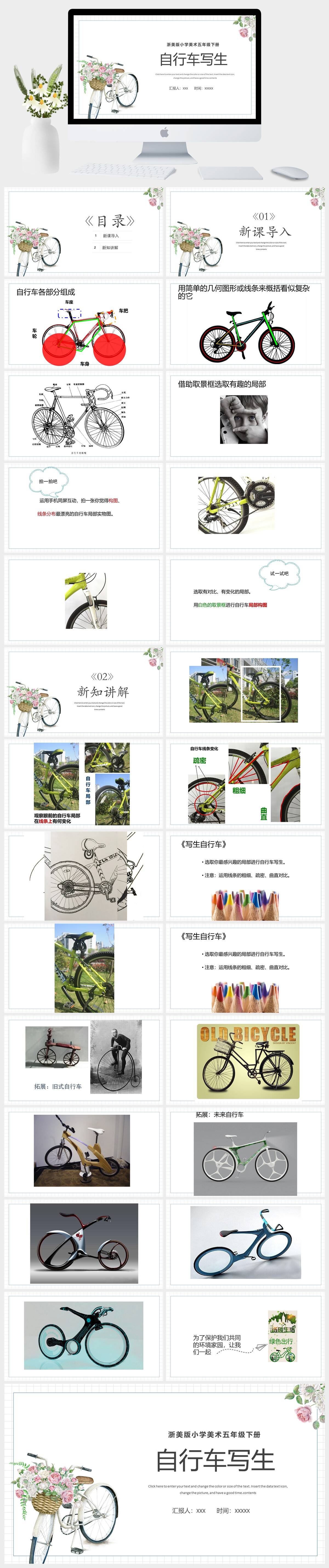 HKMS3185-浙美版小学美术五年级下册自行车写生PPT模板