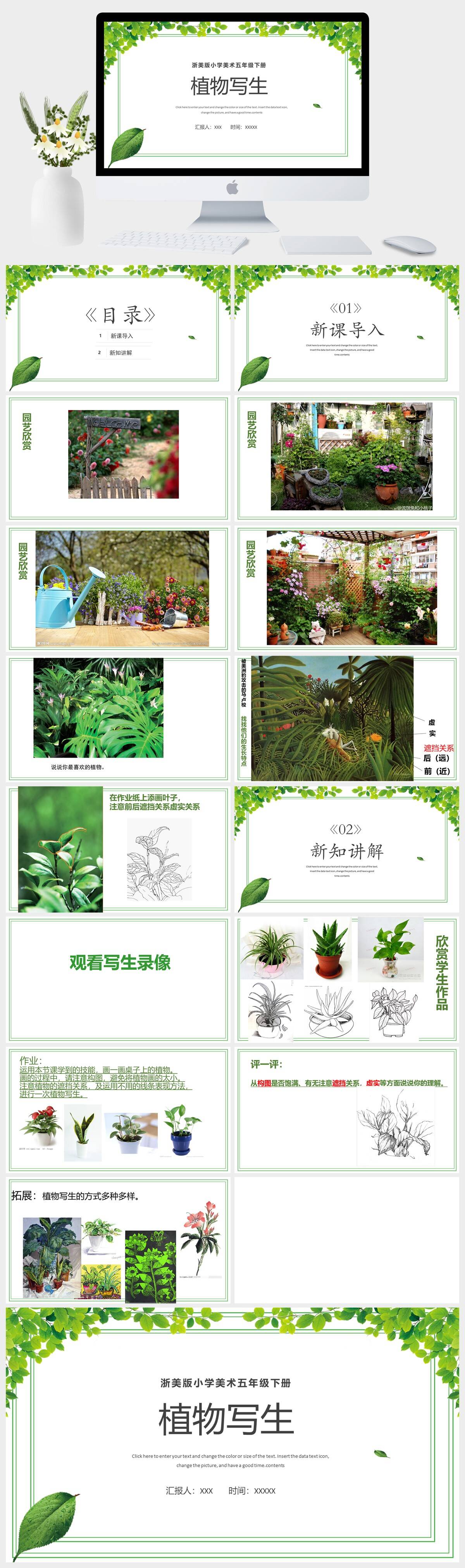 HKMS3189-浙美版小学美术五年级下册植物写生PPT模板