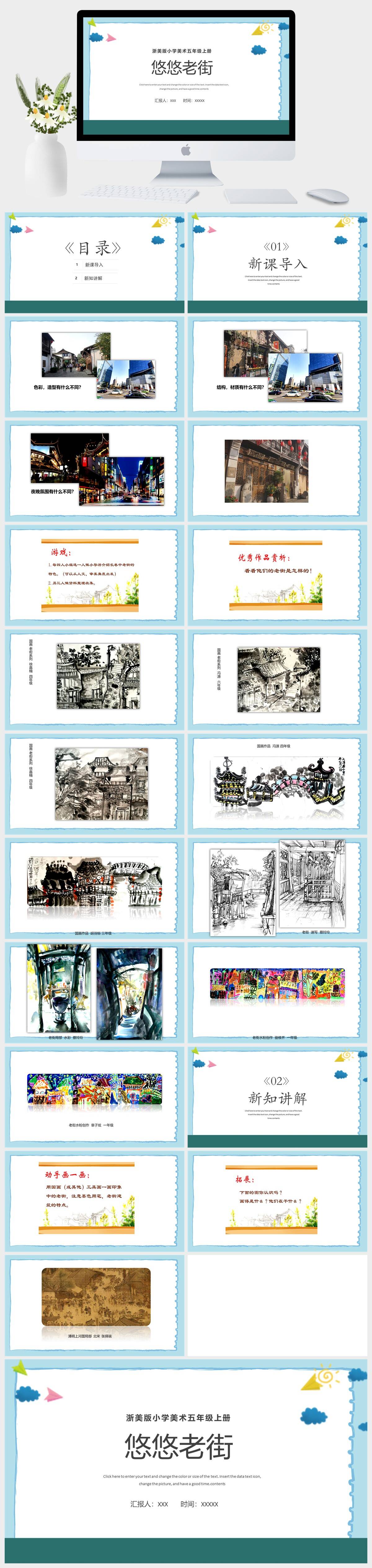 HKMS3200-浙美版小学美术五年级上册悠悠老街PPT模板
