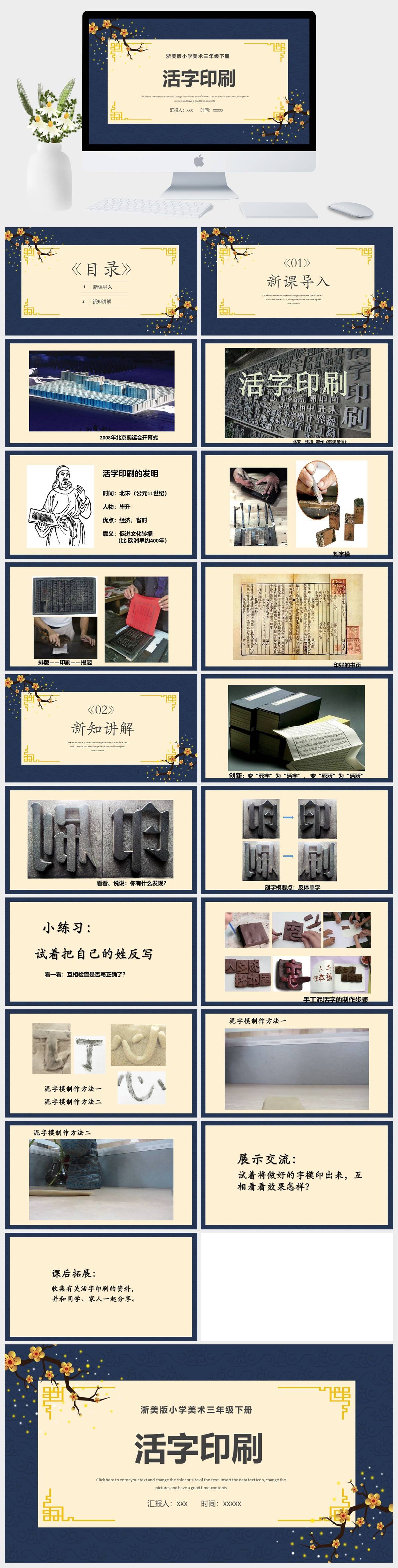 HKMS3223-浙美版小学美术三年级下册活字印刷PT模板 (2)