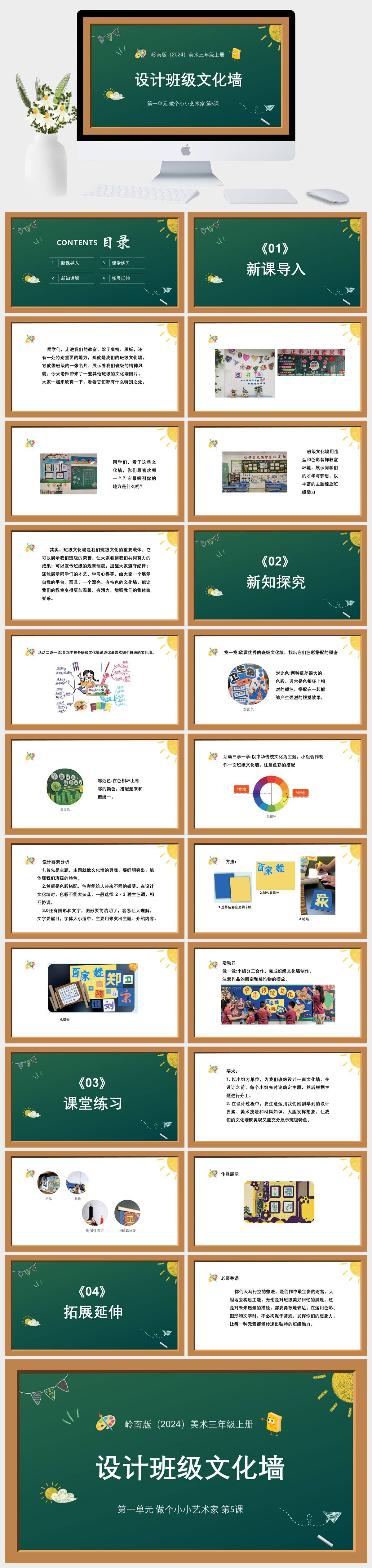 HKMS3290-岭南版(2024)美术三年级上册第一单元 做个小小艺术家 第5课 设计班级文化墙PPT模板