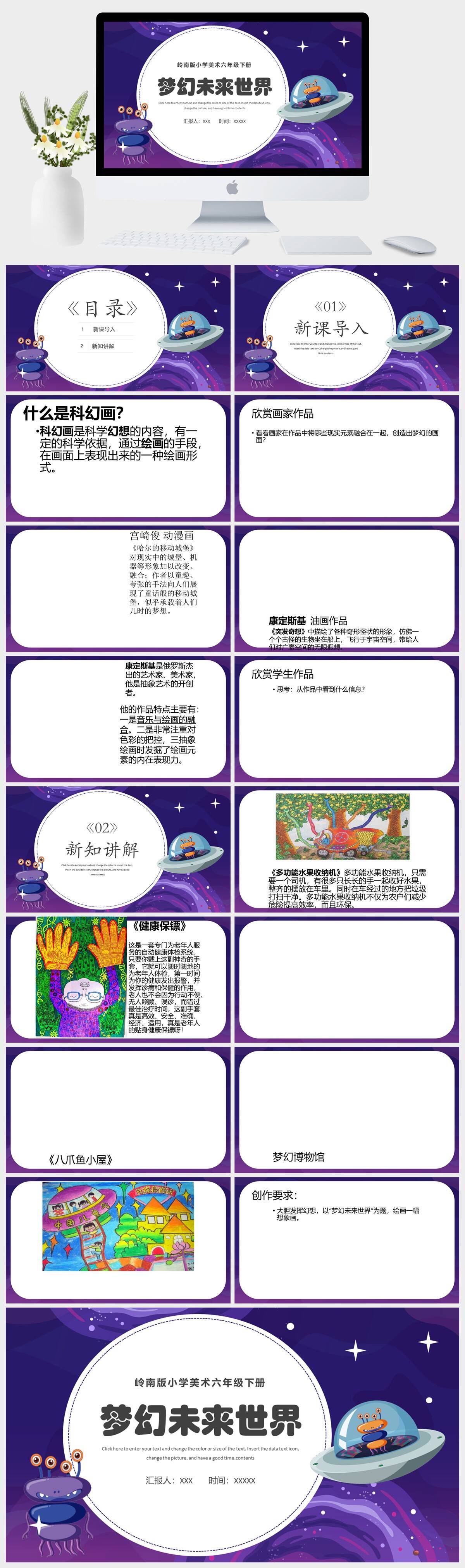 HKMS3361-岭南版小学美术六年级下册梦幻未来世界PPT模板
