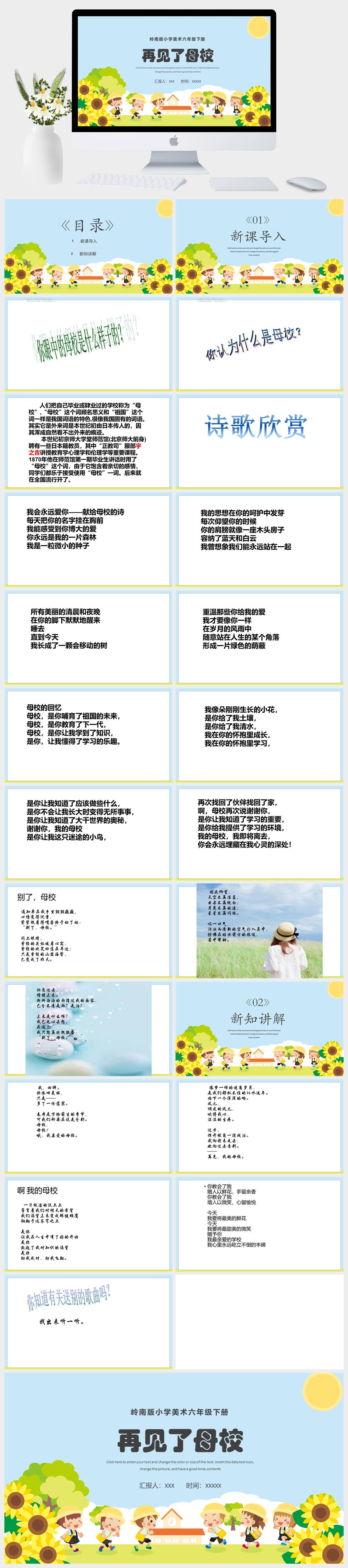 HKMS3365-岭南版小学美术六年级下册再见了母校PPT模板