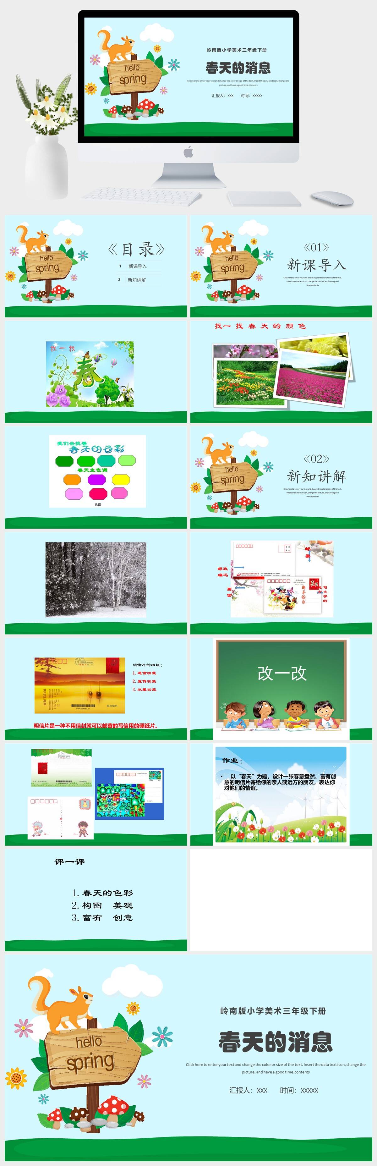 HKMS3462-岭南版小学美术三年级下册春天的消息PPT模板