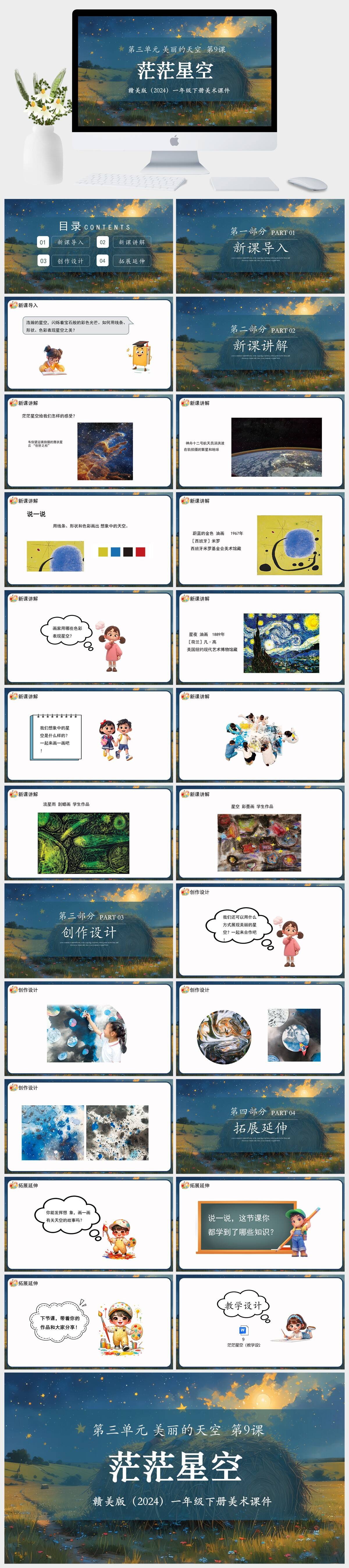 HKMS3488-赣美版(2024)一年级下册美术第三单元 美丽的天空 第9课茫茫星空课件PPT模板