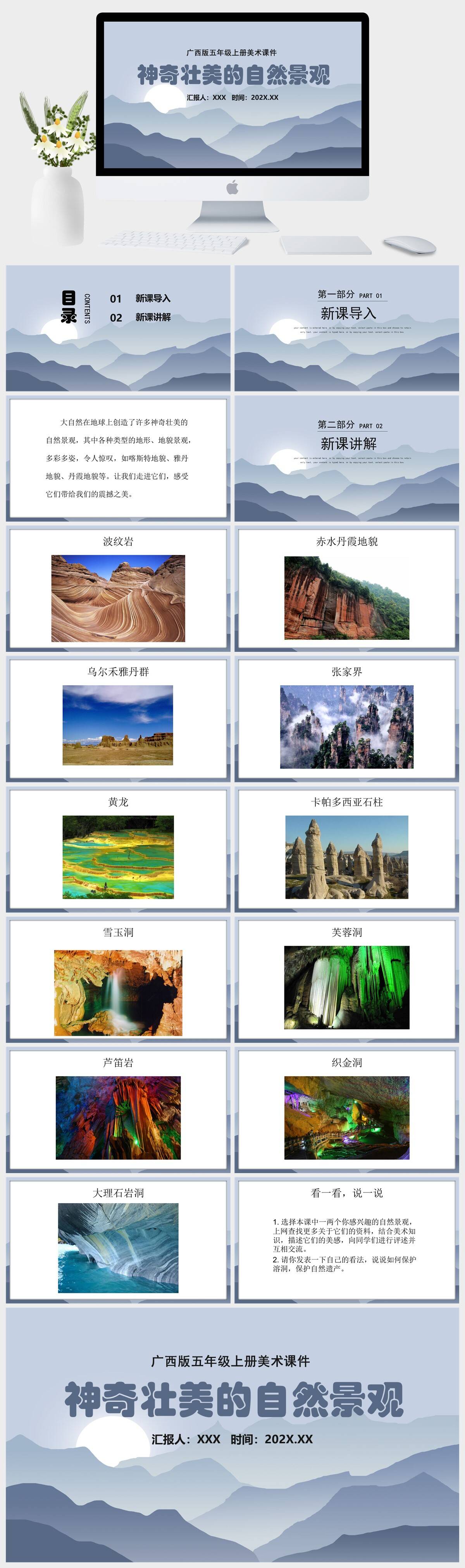 HKMS3772-广西版五年级上册美术《神奇壮美的自然景观》课件PPT模板
