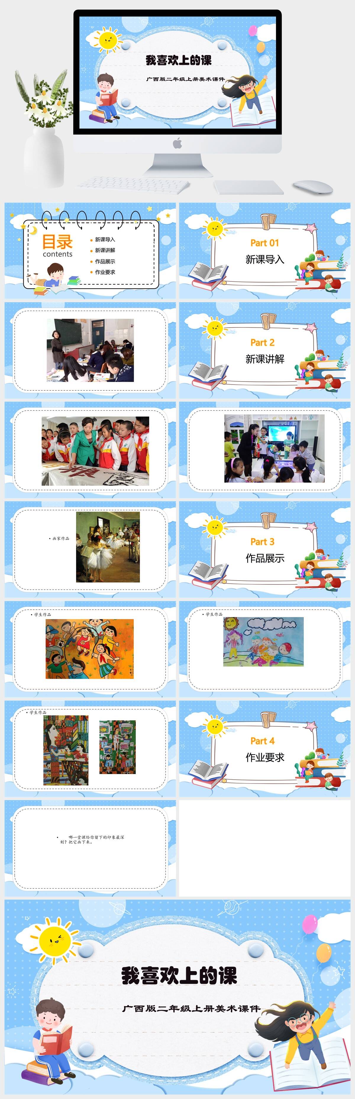 HKMS3887-广西版二年级上册美术《我喜欢上的课》课件PPT模板