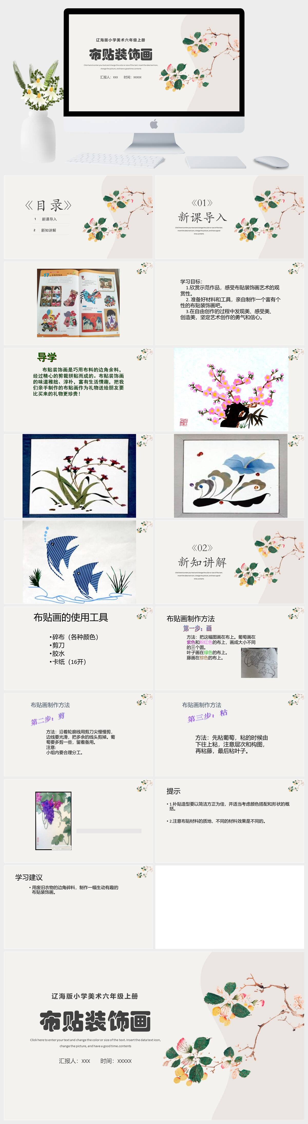 HKMS4005-辽海版小学美术六年级上册布贴装饰画PPT模板