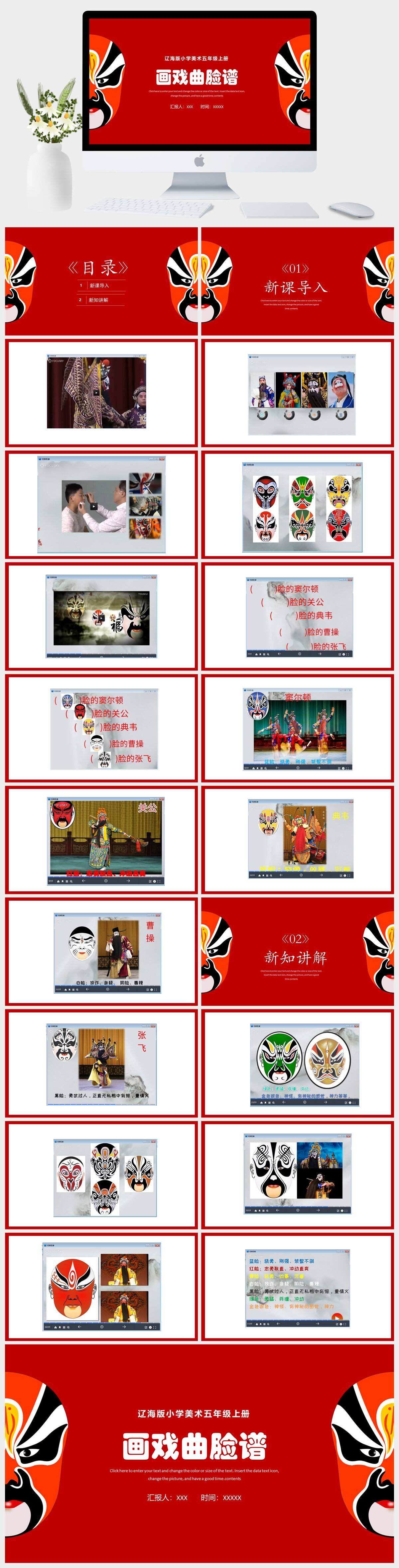 HKMS4047-辽海版小学美术五年级上册画戏曲脸谱PPT模板