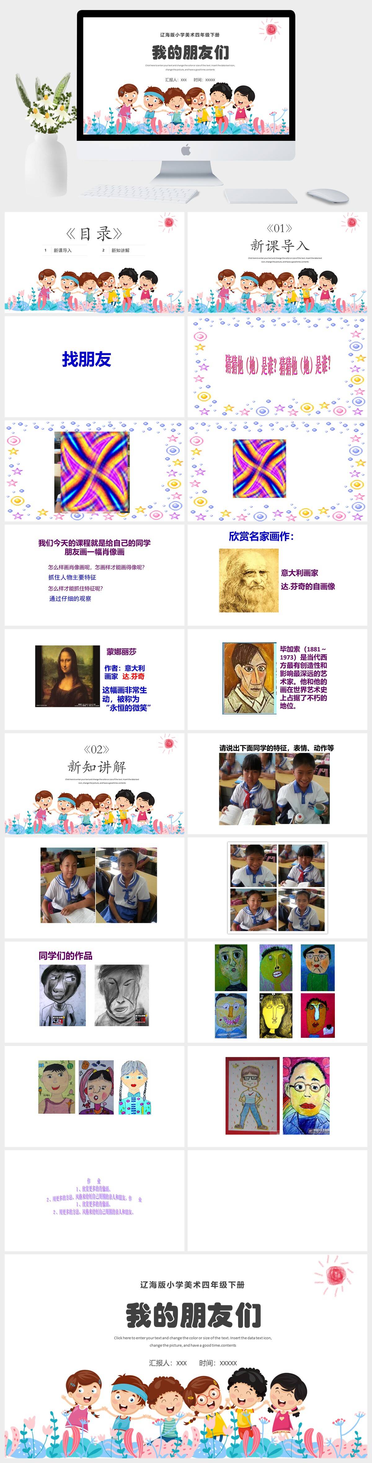 HKMS4070-辽海版小学美术四年级下册我的朋友们PPT模板