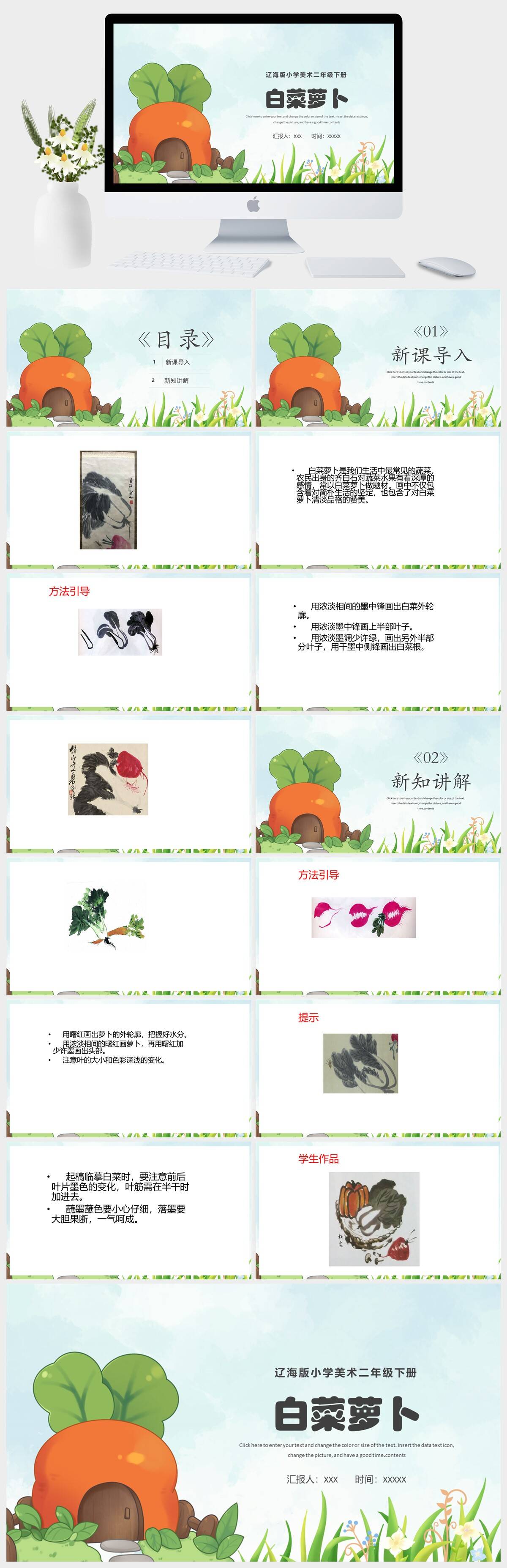 HKMS4125-辽海版小学美术二年级下册白菜萝卜PPT模板