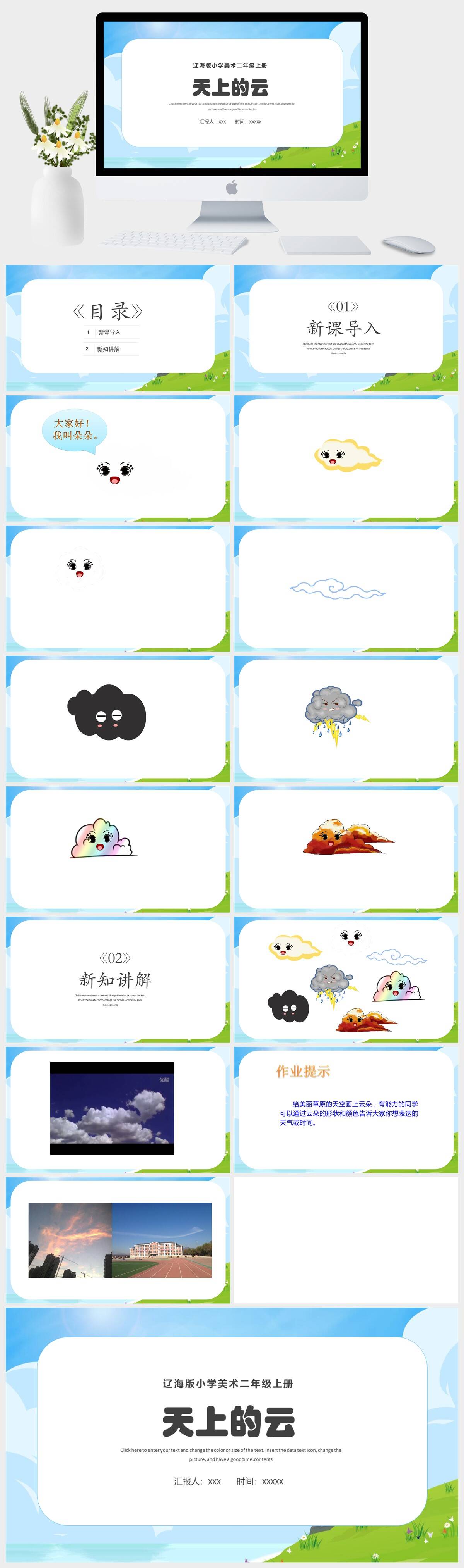 HKMS4136-辽海版小学美术二年级上册天上的云PPT模板