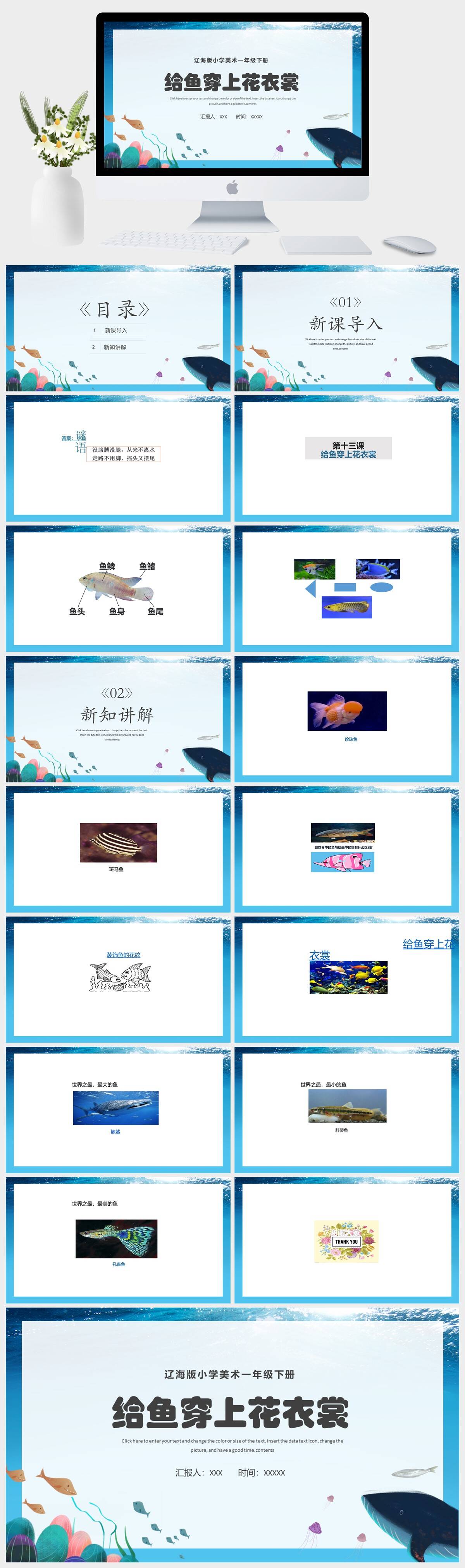HKMS4161-辽海版小学美术一年级下册给鱼穿上花衣裳PPT模板