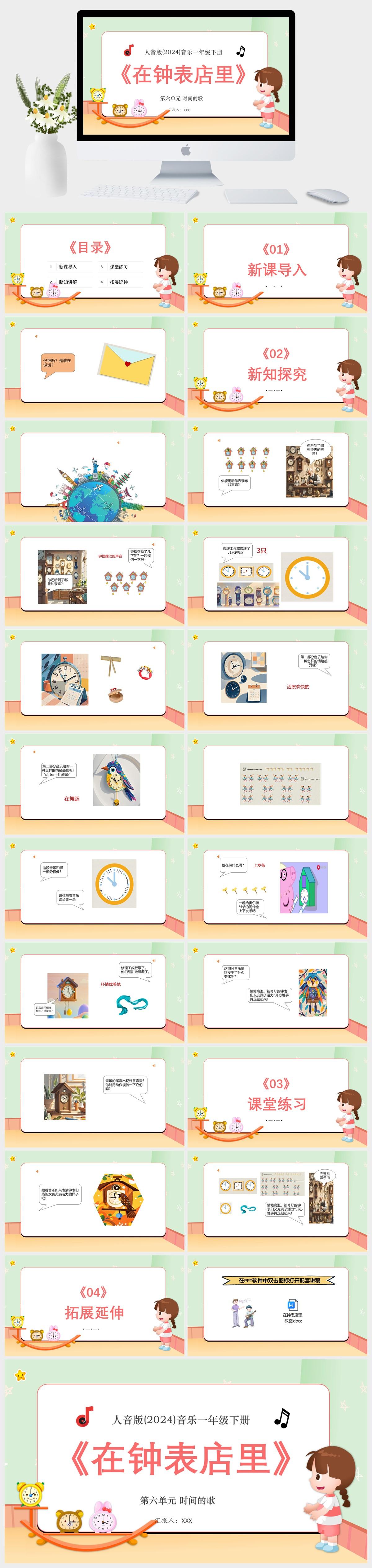 HKM23-人音版(2024)音乐一年级下册第六单元 时间的歌 在钟表店里PPT模板