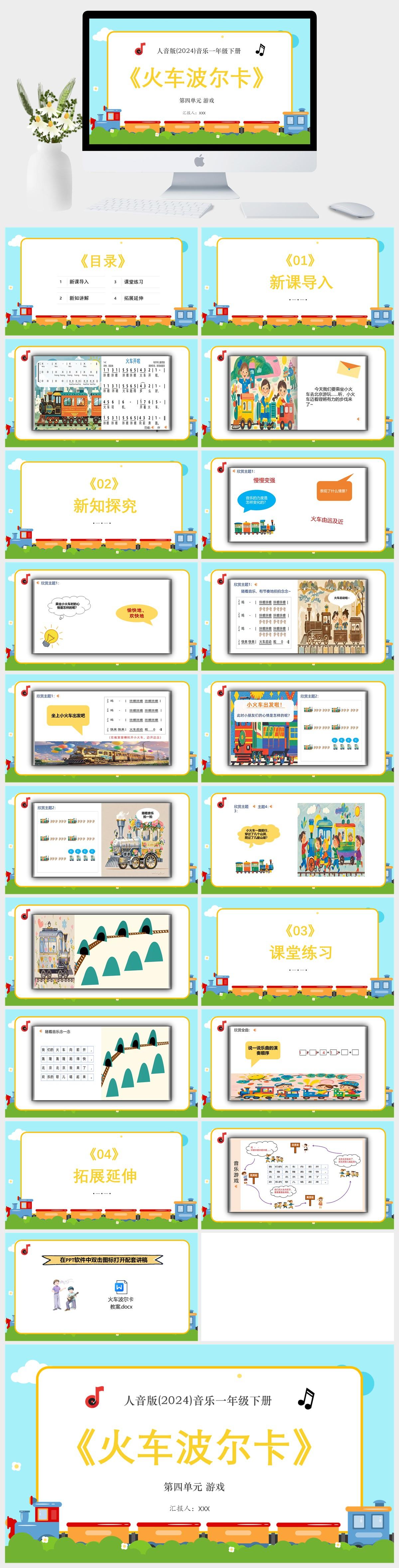 HKM30-人音版(2024)音乐一年级下册第四单元 游戏 火车波尔卡(开火车)PPT模板