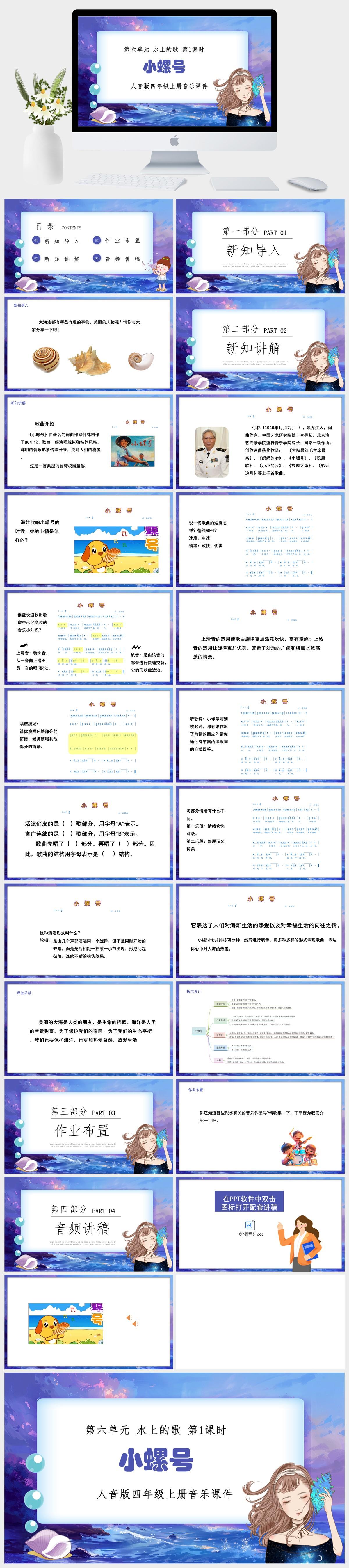 HKM165-人音版四年级上册音乐第六单元水上的歌第1课时《小螺号》课件PPT模板