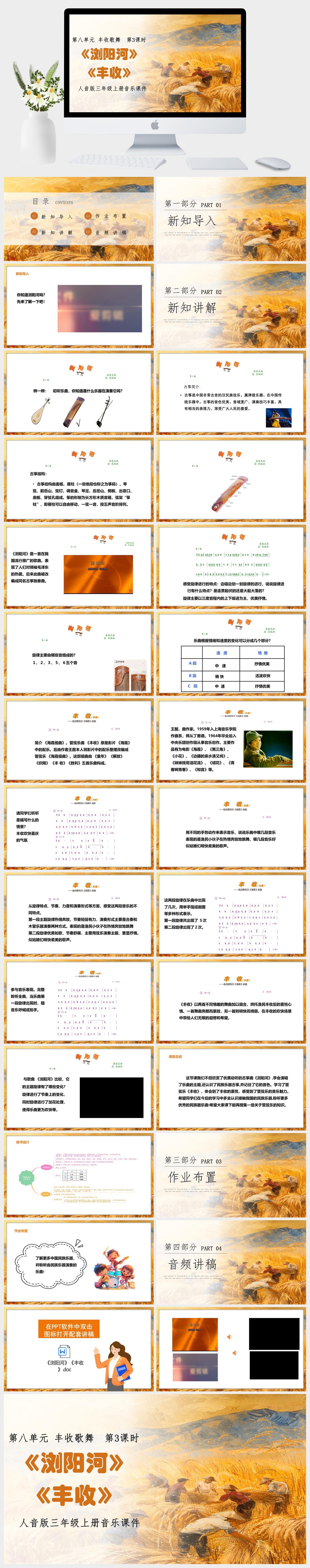 HKM235-人音版三年级上册音乐第八单元丰收歌舞第3课时《浏阳河》《丰收》课件PPT模板