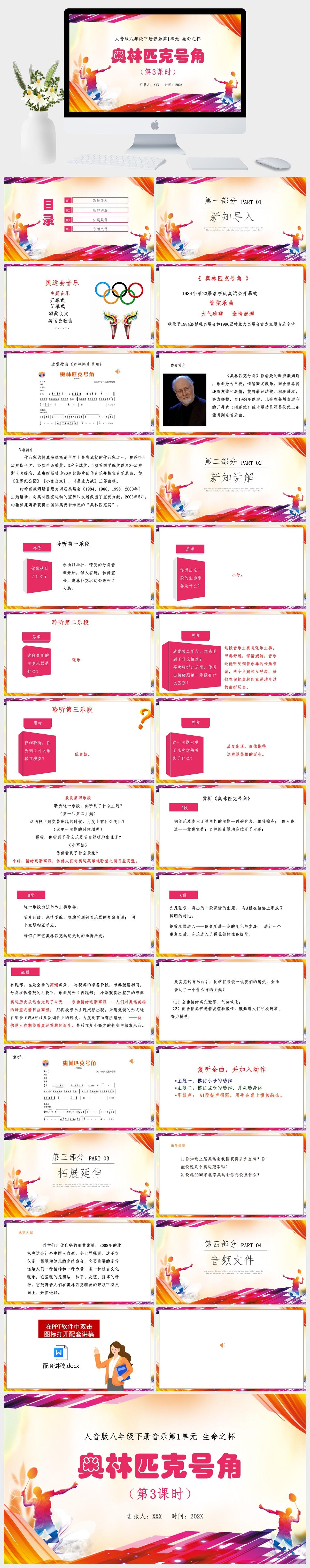 HKM306-人音版八年级下册音乐第1单元生命之杯第3课时《奥林匹克号角》课件PPT模板