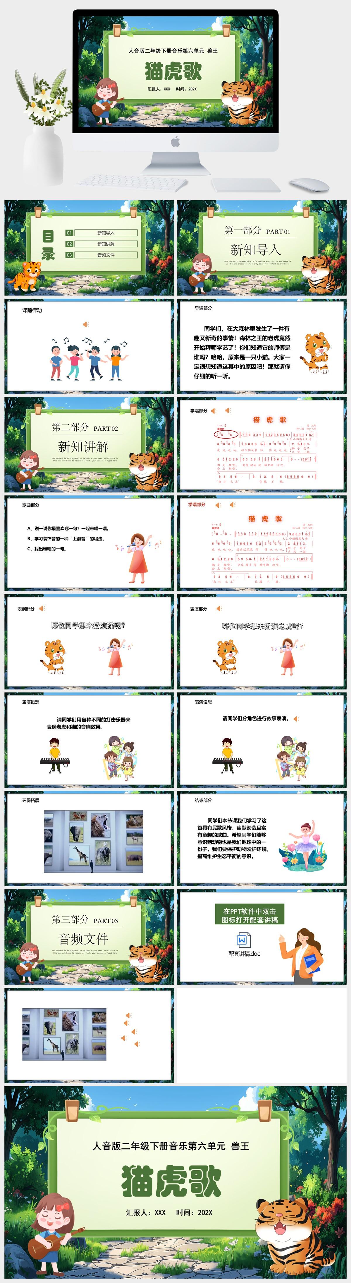 HKM408-人音版二年级下册音乐第六单元兽王《猫虎歌》课件PPT模板