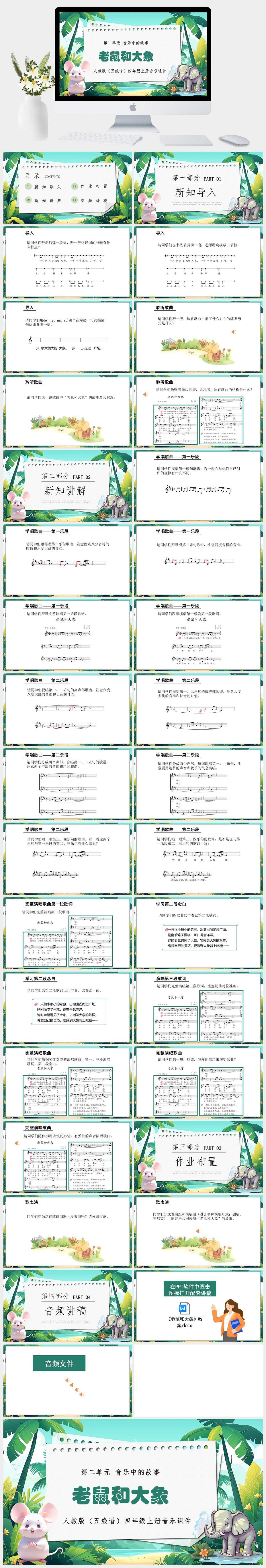 HKM459-人教版(五线谱)四年级上册音乐第二单元音乐中的故事《老鼠和大象》课件PPT模板