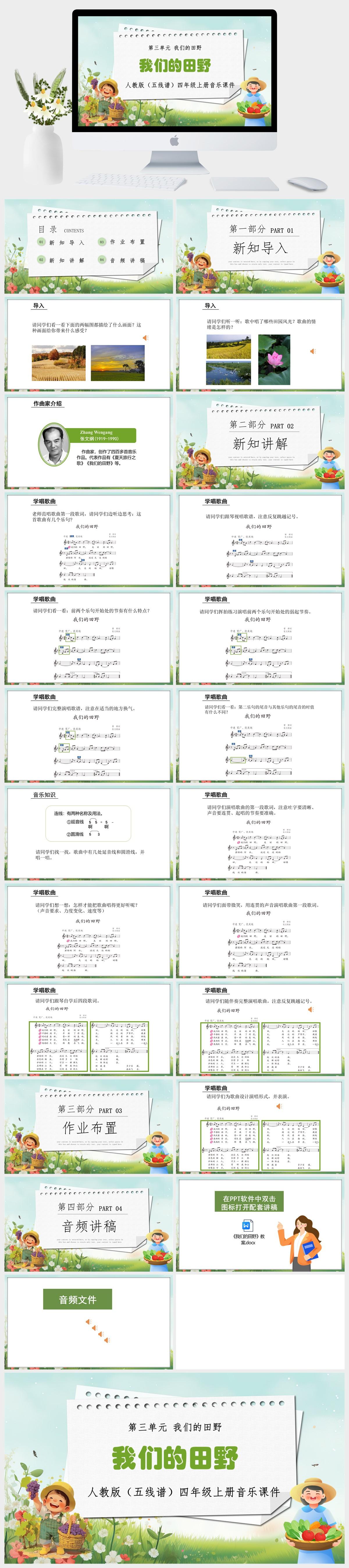 HKM465-人教版(五线谱)四年级上册音乐第三单元我们的田野《我们的田野》课件PPT模板
