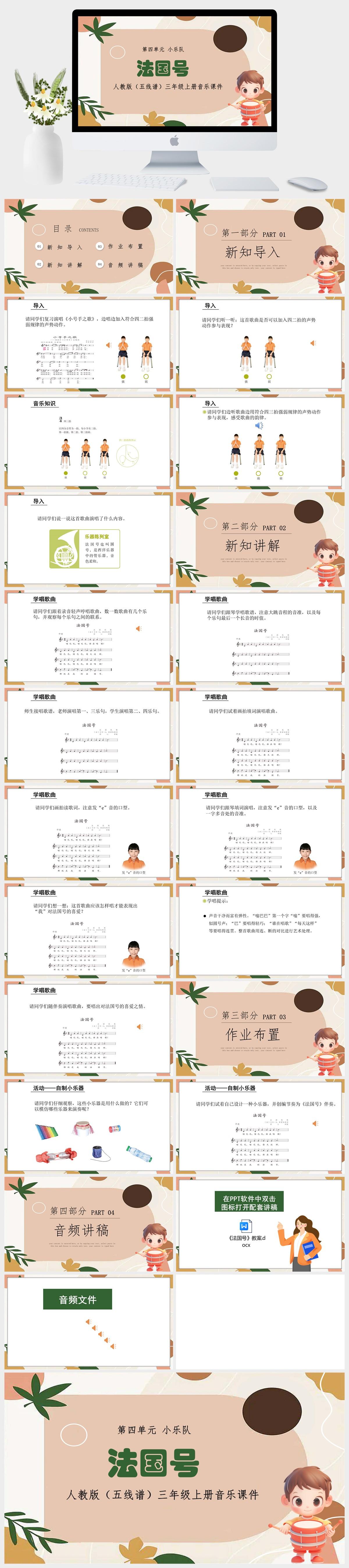 HKM489-人教版(五线谱)三年级上册音乐第四单元小乐队《法国号》课件PPT模板