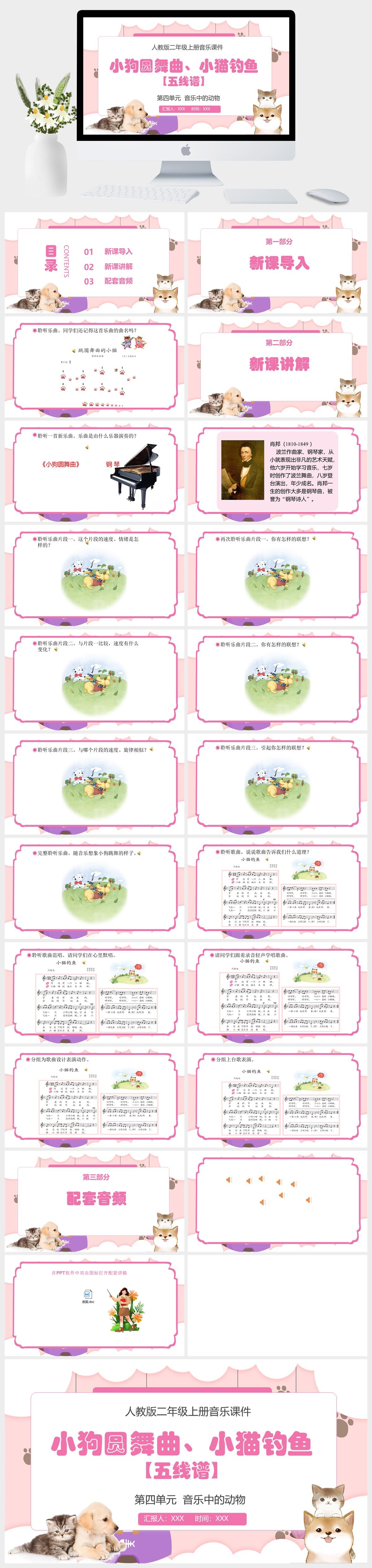 HKM498-人教版音乐小学二年级上册第四单元音乐中的动物《小狗圆舞曲》《小猫钓鱼》(五线谱)PPT模板