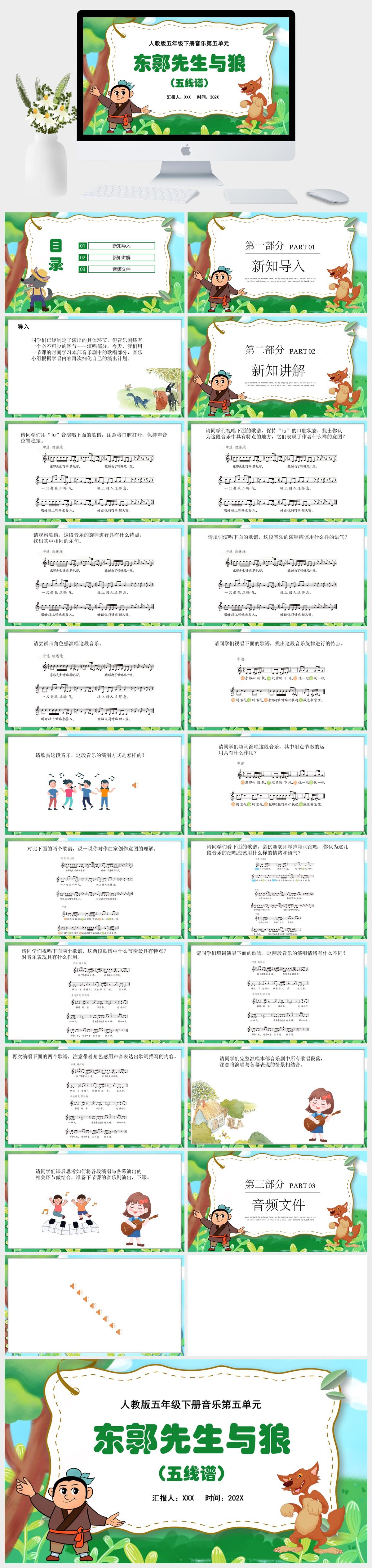 HKM620-人教版五年级下册音乐第五单元东郭先生与狼(五线谱)课件PPT模板.