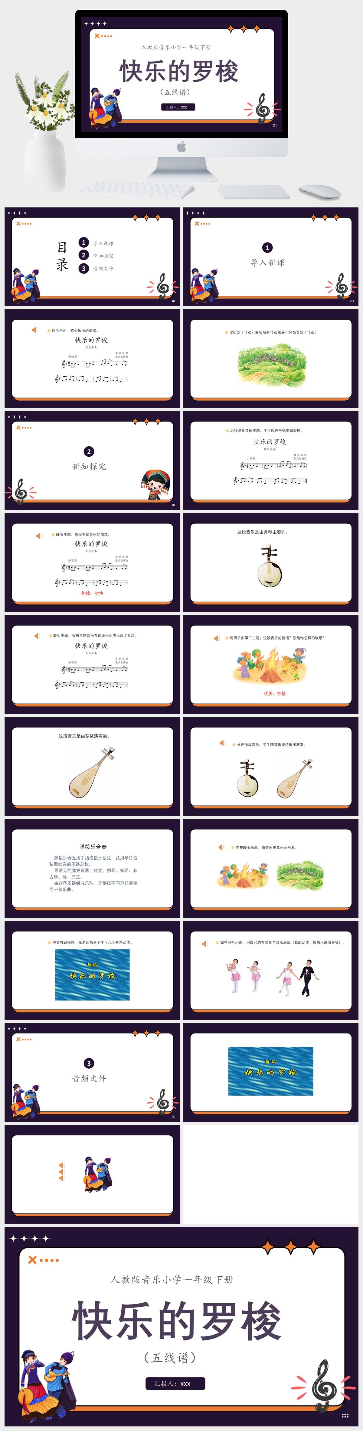 HKM701-人教版音乐小学一年级下册第五单元快乐的罗梭(五线谱)PPT模板