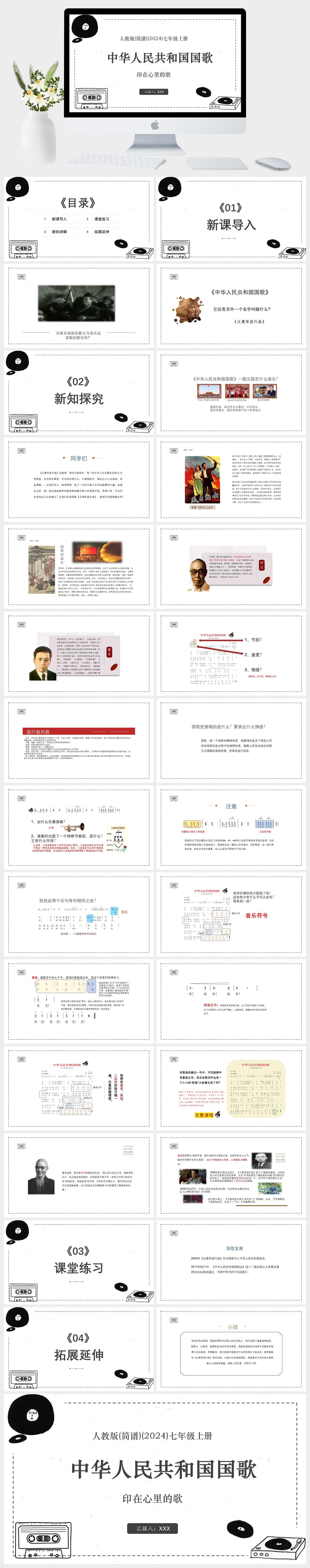 HKM823-人教版(简谱)(2024)七年级上册 印在心里的歌中华人民共和国国歌PPT模板